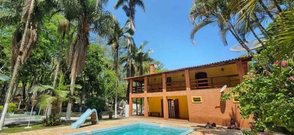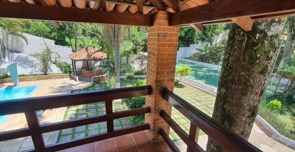 Chácara a venda na cidade de Embu das Artes, bairro do Jd. Pinheirinho. Próximo a tradicional Feira de Embu das Artes. Um lugar muito agradável em meio a Natureza. Terreno total com 5 mil metros quadrados e área construída de aproximadamente 600 metros quadrados. Amplo salão coberto com churrasqueira, forno de pizza, forno a lenha e fogão industrial. Piscina, quadra de futsal, bosque, espaço para horta com arvores frutíferas, lago para pesca com um barco para passeio. Conta também com poço artesiano. Apenas 100 metros de estrada de terra. Casa principal:3 dormitório, sendo 1 suíte, banheiro, lavabo, sala com 4 ambientes sendo 1 com lareira, ampla cozinha; Área externa:1 dormitório com banheiro acoplado, vestiário. Casa do caseiro:2 dormitório, sala, banheiro e cozinha Espaço para canil. O imóvel possui documentação e aceita financiamento. O mesmo pode ser utilizado como moradia e também para fins comerciais (locações para dayuse).O local também pode ser utilizado de forma comercial para locações. Excelente oportunidade.* Da financiamento AGENDE JÁ SUA VISITA!!!